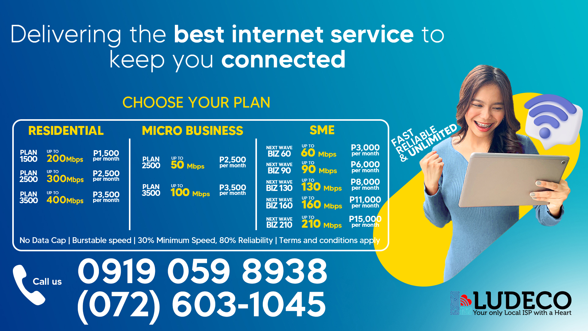 LUDECO INTERNET is now available in San Juan, San Fernando, and Bauang, La Union.